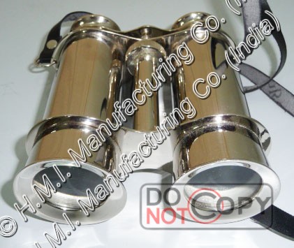 Binoculars, field glasses or binocular telescopes are a pair of identical or mirror-symmetrical telescopes mounted side-by-side and aligned to point accurately in the same direction, allowing the viewer to use both eyes with binocular vision when viewing distant objects. Most are sized to be held using both hands, although there are much larger types. Small, low-power binoculars for use at performance events are known as opera glasses (see below). Many different abbreviations are used for binoculars, including glasses and bins.